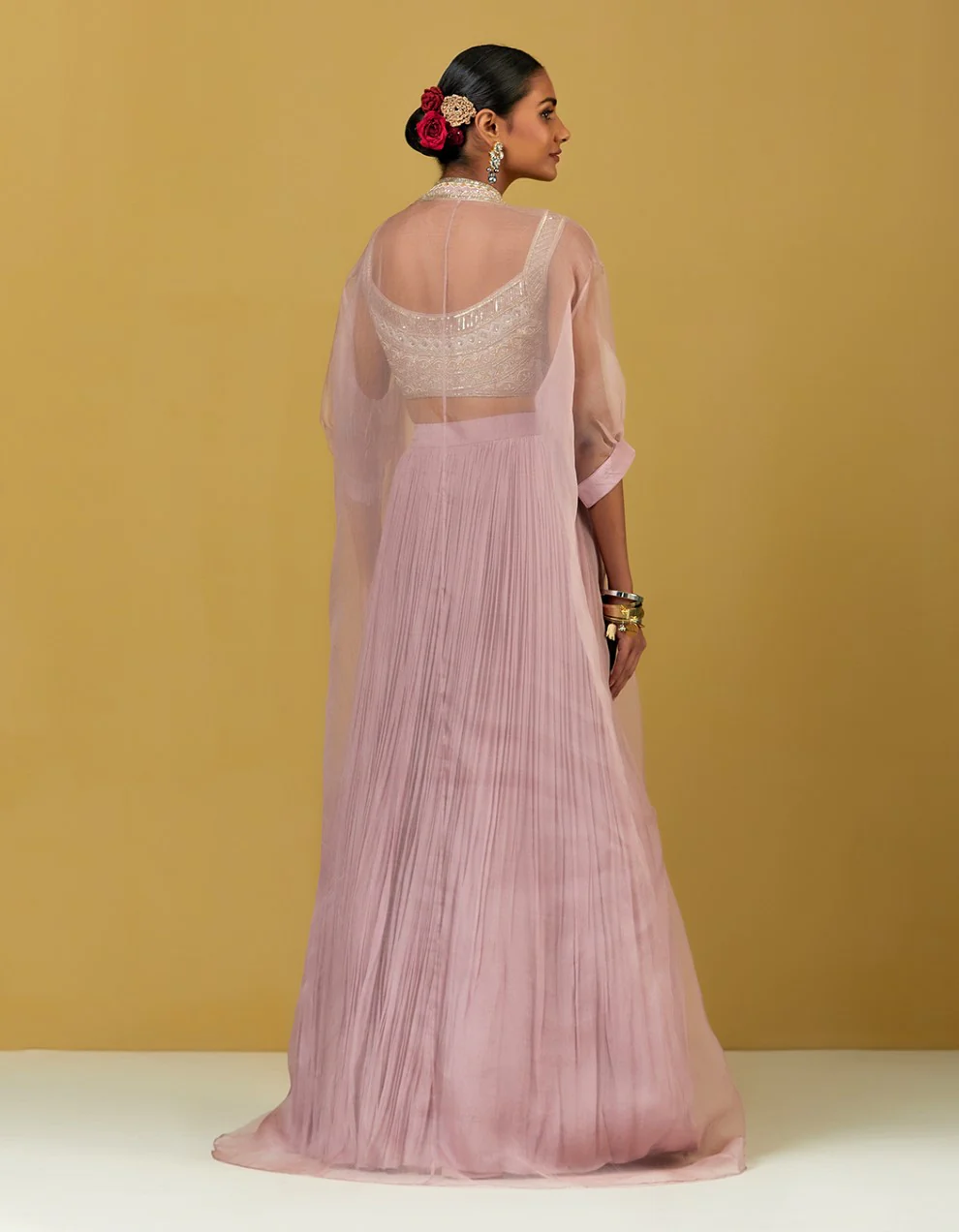 A modern classic- Lavender and golden hand embroidery blends seamlessly to create this eternally graceful crop top. The crop is elevated with floral designs, thin straps, and a stunning low-back design that catches the attention like no other. The lavender chanderi silk crop top with sequin work is a fit that works best with skirts, palazzos, and pants to create a perfect ethnic wear outfit for festivities and big fat celebrations.