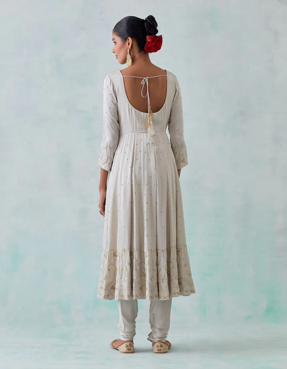 Anarkali: A regal and elegant style that brings traditional Indian wear to the forefront of today’s fashion. Immerse yourself in the sheen of satin, hues of tradition, and an echo of festive wear that makes you shine bright like a star. The intricate embroidery all over the dupatta and cheeta work on the kurta effortlessly combines grace, style, and a hint of whimsy.